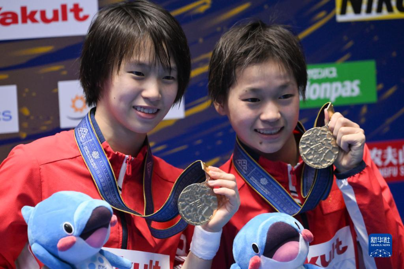 7月16日,陈芋汐(左)/全红婵在颁奖仪式上(图/新华社)