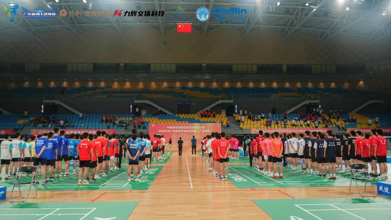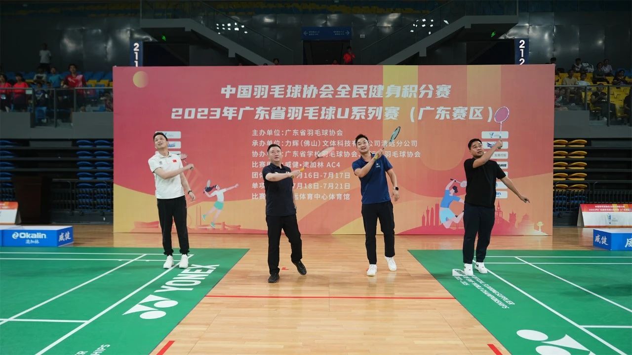 “3,2,1,开球!”随着几位嘉宾的开球,中国羽毛球协会全民健身积分赛2023年广东省羽毛球U系列赛(广东赛区)于7月16日在清远体育中心体育馆正式打响。