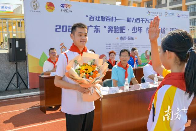 为了促进边远地区青少年的体质健康,广东省青少年体育联合会与广东省体育局携手,共同开展了“百社联百村——助力百千万工程”2023年广东“奔跑吧·少年 快乐操场”活动。9月27日,首站活动在粤西阳江阳东欢乐启动。