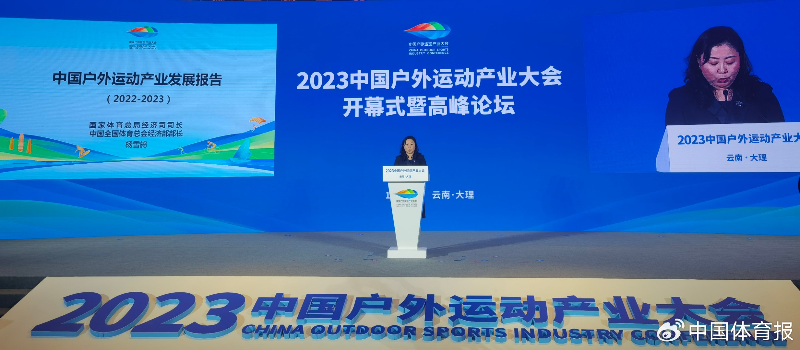 10月27日,2023中国户外运动产业大会开幕式暨高峰论坛在云南省大理白族自治州举行。高峰论坛上,国家体育总局经济司司长杨雪鸫对《中国户外运动产业发展报告》进行了发布与解读。