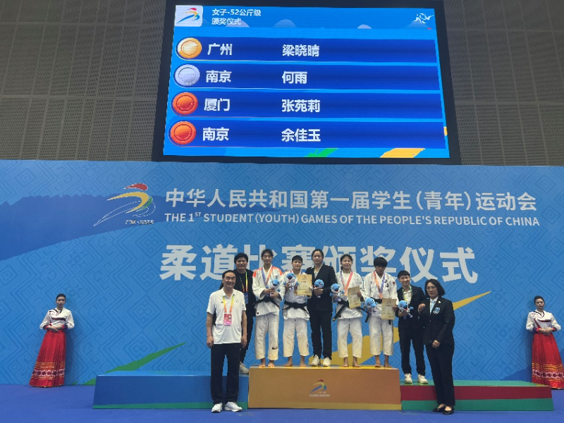 中华人民共和国第一届全国学生 (青年)运动会 (公开组) 柔道项目比赛于10月27日至30日在广西壮族自治区南宁市广西壮族自治区体育局三塘训练基地体育馆举行。本届赛事共有来自国内30多个城市两百多名运动员参加,在10月27日首个比赛日,广州市柔道队运动员梁晓晴在女子-52公斤级的比赛中不畏强手、顽强拼搏,为广州体育代表团取得一枚宝贵的金牌。