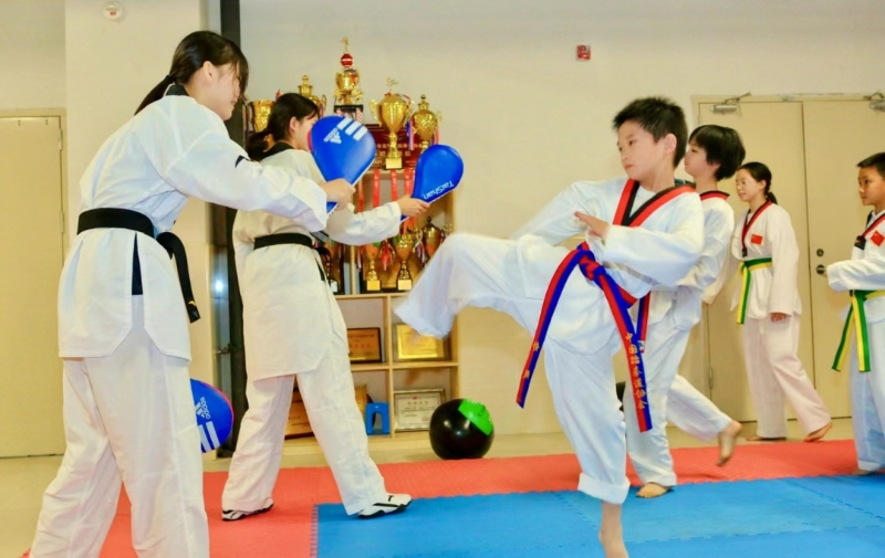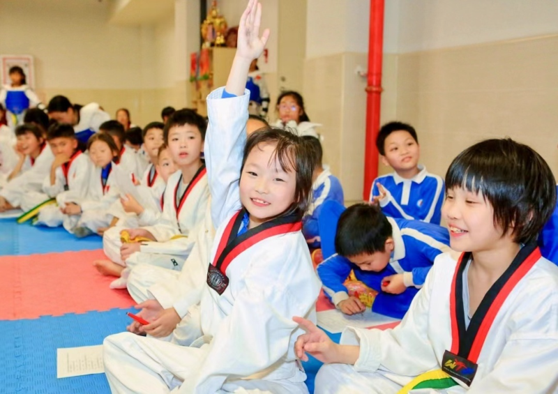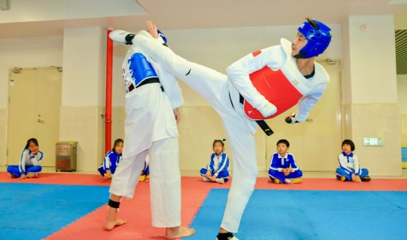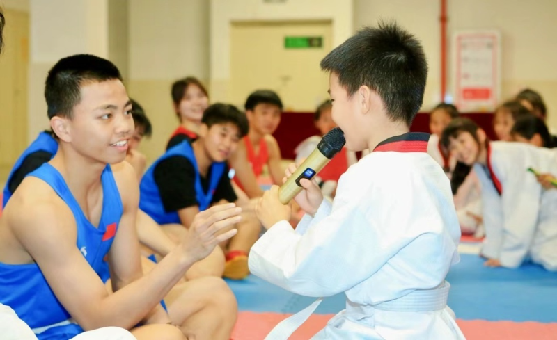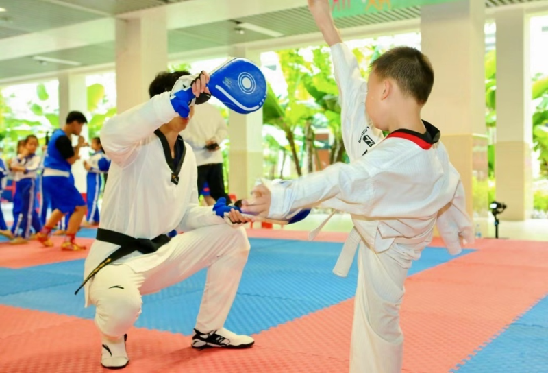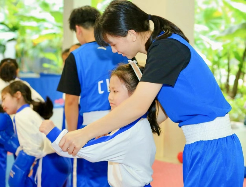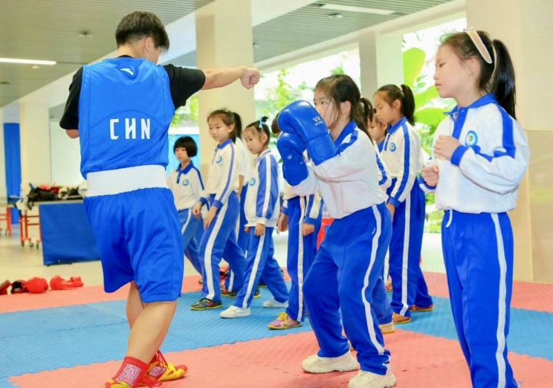 紧接着,这些省队运动员们走到学生们中间,耐心指导他们练习跆拳道和拳击的基本动作。跆拳道运动员们教导学生们如何正确站姿、踢腿以及基本的防身动作,而拳击运动员们则重点教授学生们如何摆拳、闪躲和移动脚步。通过亲身实践,学生们体验到了运动的乐趣与挑战,更加深入地理解了这两项运动的精髓和技巧,为他们未来的体育生涯奠定了坚实的基础。