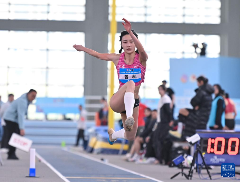 曾蕊在2024年全国室内田径锦标赛女子三级跳远决赛中(图/新华社)