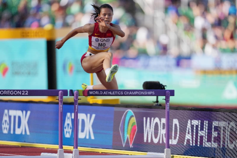 2022年7月20日,莫家蝶参加尤金世锦赛女子400米栏预赛(图/新华社)