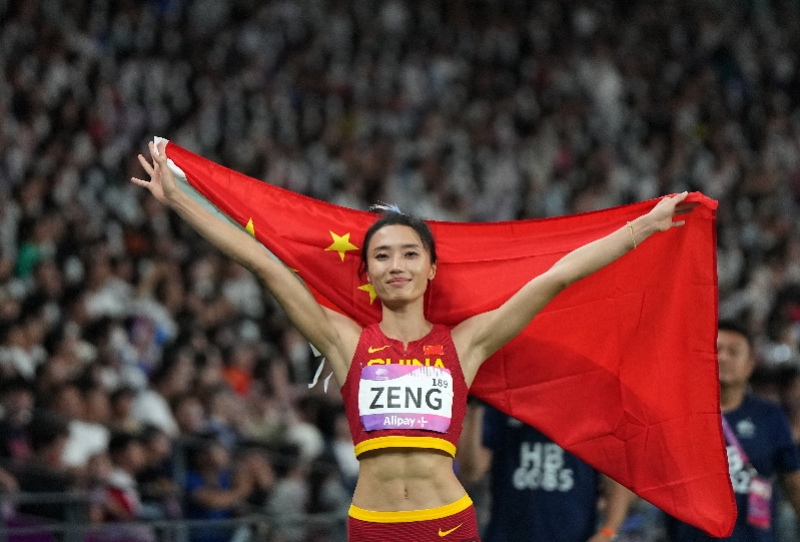 2023年10月4日,杭州亚运会女子三级跳远,曾蕊获得银牌(图/新华社)